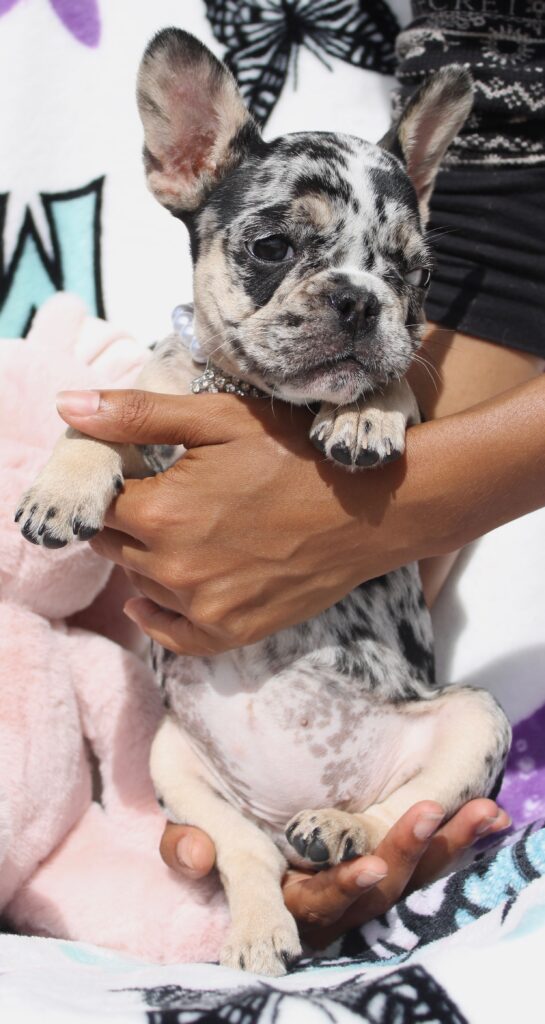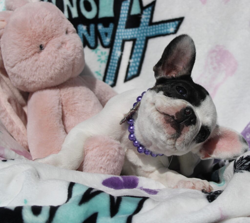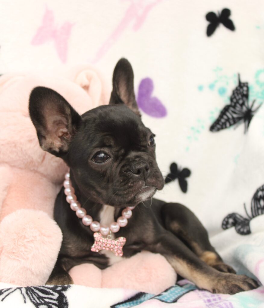 Thank you for tuning in to our Tuesday blog! Our little ones have crossed over into the 13 & 14 week marks today. These french bulldog puppies are growing so big and making us proud with their leaps in development every new day. They will be transitioning over to the next phase of our program over the course of these next few weeks. Pups in training! Here’s a few pictures of our little ones most recent pics 🙂