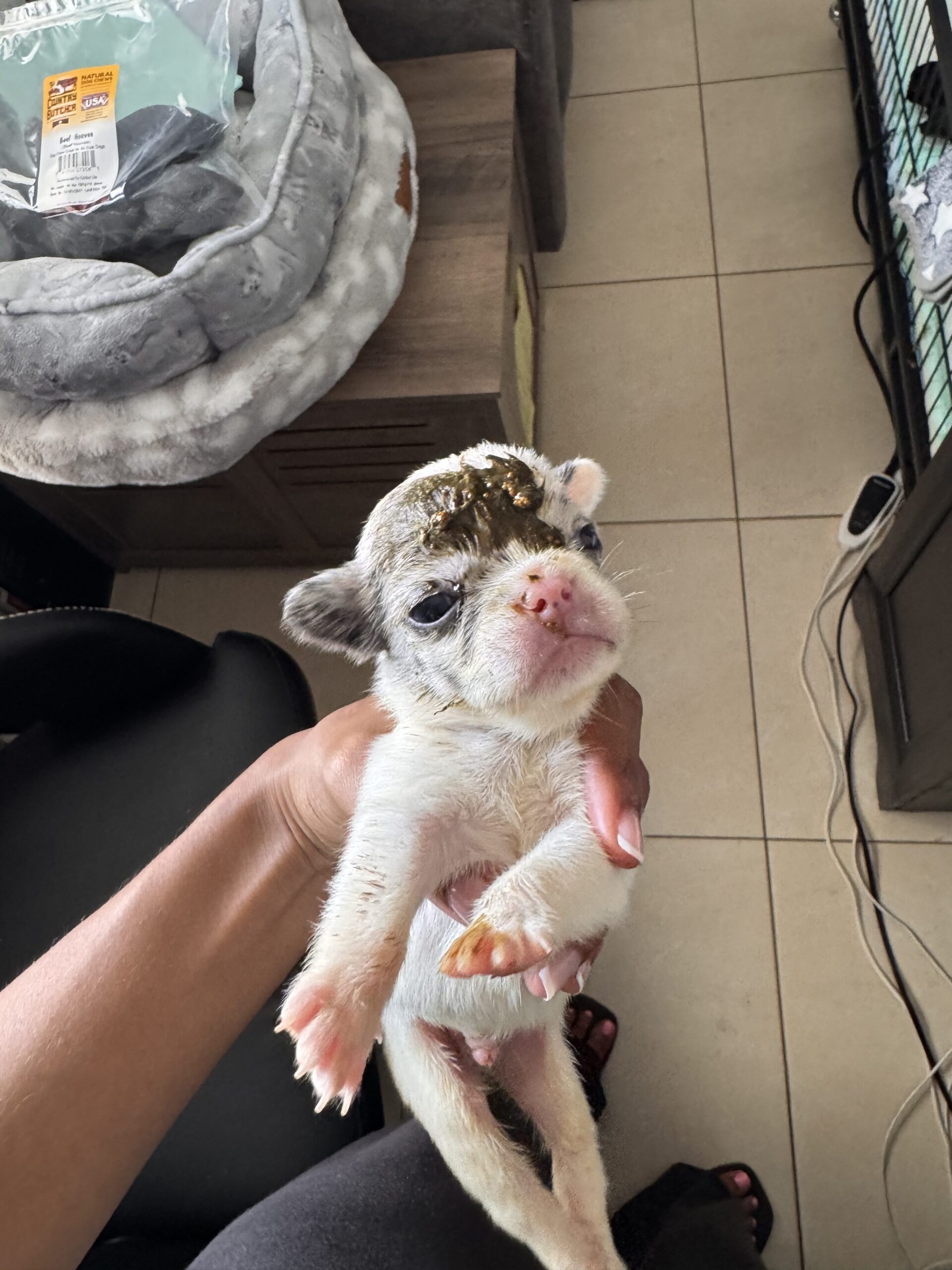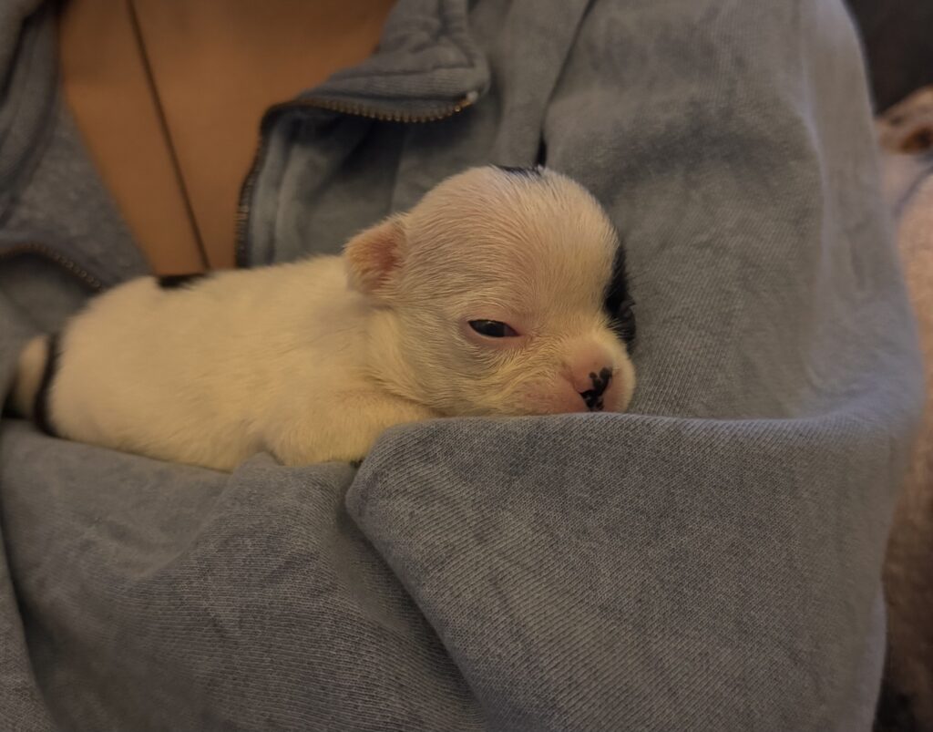 Today officially marks 6 weeks for these pups! They are truly growing into showing more dog like features and looking less like a mass wrinkle. Don’t get me started on the weight gain, these guys can eat no problem.